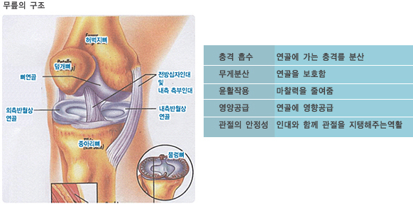 각종 재해나 스포츠 외상 후 반원상 연골판 손상부분을 방치할 경우 손상된 연골판의 마모 및 퇴화로 완전결손 및 소실 소견을 보여 뼈와뼈끼리 부딪히며 연골손상 및 뼈의 변형까지 올수 있음.